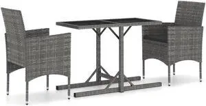 vidaXL Patio Dining Set 3 Piece Dining Table and Chairs Conversation Set Gray