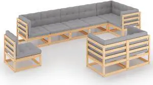 vidaXL Patio Furniture Set 9 Piece Sofa Set with Cushions Solid Wood Pine