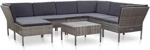 vidaXL Patio Furniture Set 8 Piece Patio Sectional Sofa with Table Rattan Gray
