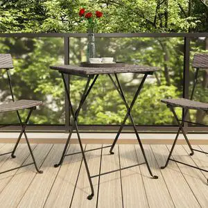vidaXL Patio Bistro Set 3 Piece Patio Furniture Set Table Chairs Rattan Brown