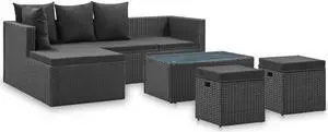 vidaXL Patio Dining Set with Cushions Garden Furniture 5 Piece Black Poly Rattan