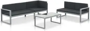 vidaXL Patio Furniture Set 3 Piece Outdoor Sofa with Table Aluminum Black