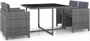 vidaXL Patio Dining Set 5 Piece Patio Furniture Set Table Chair Poly Rattan