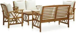 vidaXL Patio Furniture Set 5 Piece Bench Seat with Table Solid Acacia Wood