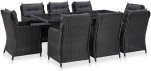 vidaXL Patio Dining Set Outdoor Table and Chair Set 7 Piece Poly Rattan Black
