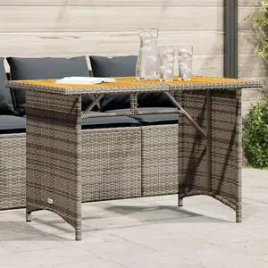vidaXL Patio Table with Wooden Top Garden Outdoor Furniture Gray Poly Rattan