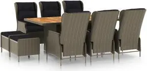 vidaXL Patio Dining Set with Cushions Outdoor Furniture 5 Piece Gray Poly Rattan