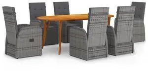 vidaXL Patio Dining Set 7 Piece Table Chair with Cushions Poly Rattan Brown