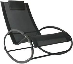 Pool Lounger, Outdoor Rocking Lounge Chair for Sunbathing, Pool, Beach, Porch with Pillow & Cool Mesh, Sun Tanning Rocker, Black