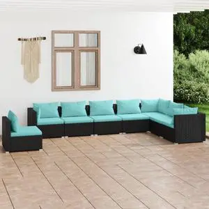 vidaXL Patio Lounge Set 8 Piece with Cushions Black Poly Rattan Garden Sofa