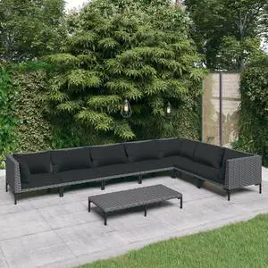 vidaXL Patio Lounge Set Outdoor Sectional Sofa 9 Piece Poly Rattan Dark Gray