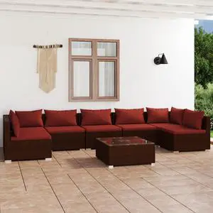 vidaXL Patio Lounge Set Outdoor Sectional Sofa Set 8 Piece Poly Rattan Brown