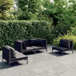 vidaXL Patio Lounge Set Outdoor Sectional Sofa 6 Piece Poly Rattan Dark Gray