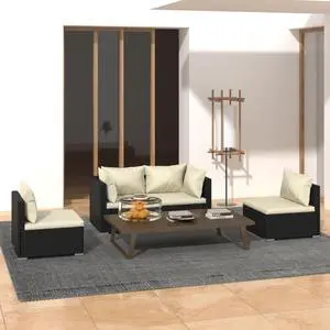vidaXL Patio Lounge Set 4 Piece with Cushions Poly Rattan Black Furniture