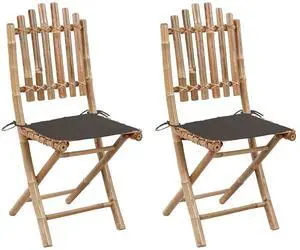 vidaXL 2x Folding Patio Chairs with Cushions Bamboo Outdoor Garden Furniture