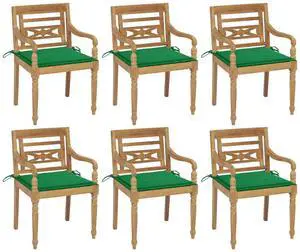 vidaXL 6x Solid Teak Wood Batavia Chairs with Cushions Wooden Garden Chair