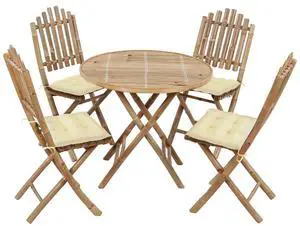 vidaXL Outdoor Dining Set Cream, Natural Bamboo Bamboo, Polyester