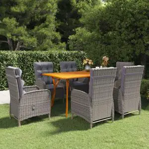 vidaXL Dining Set Grey Solid acacia wood, Poly rattan, Steel 7 Piece Set