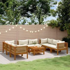 vidaXL Garden Lounge Set Cream Solid acacia wood, 100% polyester fabric