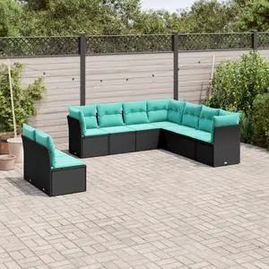 vidaXL Patio Sofa Set with Cushions Outdoor Furniture 9 Piece Black Poly Rattan