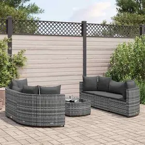 vidaXL Patio Lounge Set with Cushions Sectional Sofa 5 Piece Gray Poly Rattan