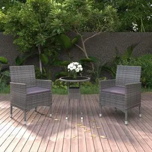 vidaXL Bistro Set Grey Poly rattan, steel, tempered glass Small