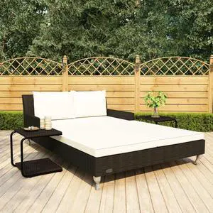 vidaXL Daybed 2-Person Patio Garden Sun Bed with Cushions Poly Rattan Black