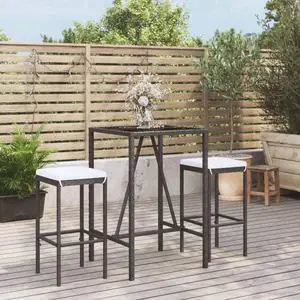 vidaXL Patio Bar Set with Cushions Bistro Kitchen 3 Piece Black Poly Rattan