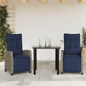 vidaXL Patio Dining Set with Cushions Furniture 3 Piece Poly Rattan and Steel