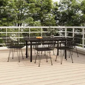 vidaXL Patio Dining Set 7 Piece Rattan Patio Conversation Set Black Poly Rattan