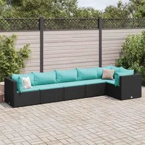 vidaXL Patio Lounge Set with Cushions Sectional Sofa 6 Piece Black Poly Rattan