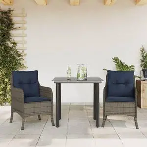 vidaXL Patio Dining Set with Cushions Outdoor Furniture 3 Piece Gray Poly Rattan