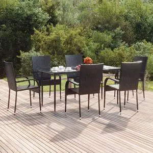 vidaXL Patio Dining Set 7 Piece Rattan Patio Conversation Set Black Poly Rattan