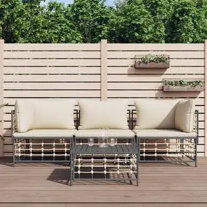 vidaXL Patio Furniture Set 4 Piece Chair with Cushions Anthracite Poly Rattan