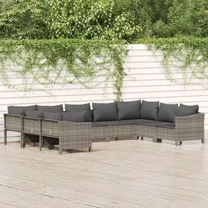 vidaXL Patio Furniture Set 9 Piece Sofa Set with Cushions Gray Poly Rattan