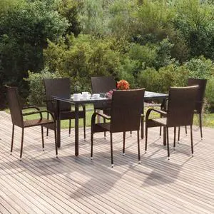 vidaXL Patio Dining Set 7 Piece Rattan Patio Conversation Set Brown Poly Rattan