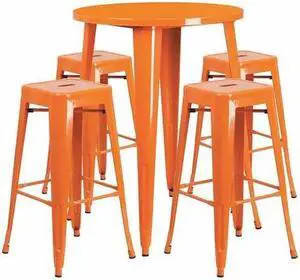 Flash Furniture Coby Indoor-Outdoor 30" Round Bar Table Set with 4 Backless Stools Orange (CH519BH430SQSOR)