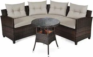 SlickBlue 4 Pieces Outdoor Cushioned Rattan Furniture Set