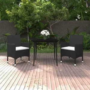 vidaXL Outdoor Dining Set Black PE rattan, steel, solid acacia wood Small