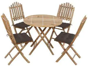 vidaXL Patio Dining Set Set of 4 Natural Bamboo Bamboo and 100% polyester