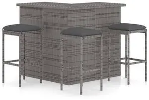 vidaXL Garden Bar Set Grey PE rattan, powder-coated steel, solid acacia wood