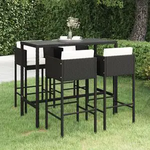 vidaXL Garden Bar Set Black, Cream White PE Rattan, Steel, Tempered Glass