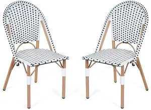 Dark Gray Faux Rattan Plastic Chair Set with Matching Side Table