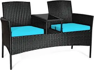 SlickBlue 3 Pieces Rattan Furniture Set with Cushioned Chair Table