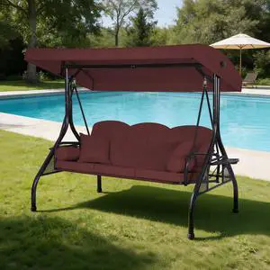 VANBOW 3-Seat Outdoor Porch Swing with Adjustable Canopy, 2 in 1 Convertible Patio Swing Bed, Patio Glider Swing for Backyard Red