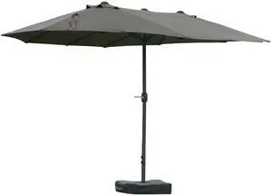 Patio Umbrella 15' Steel Rectangular Outdoor Double Sided Market with base, Sun Protection & Easy Crank for Deck Pool Patio, Dark Gray