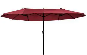 Extra Large 15ft Patio Umbrella, Double-Sided Outdoor Umbrella with Crank Handle and Air Vents for Backyard, Deck, Pool, Market, Wine Red