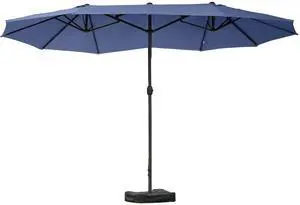 Patio Umbrella 15' Steel Rectangular Outdoor Double Sided Market with base, Sun Protection & Easy Crank for Deck Pool Patio, Dark Blue