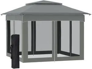 11' x 11' Pop Up Canopy, Outdoor Patio Gazebo Shelter with Removable Zipper Netting, Instant Event Tent w/ 114 Square Feet of Shade and Carry Bag for Backyard, Garden, Dark Gray
