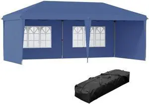 10' x 28' Party Tent Canopy, Outdoor Event Shelter Gazebo with 8 Removable Mesh Sidewalls, Zipper Doors, Steel Frame, Green